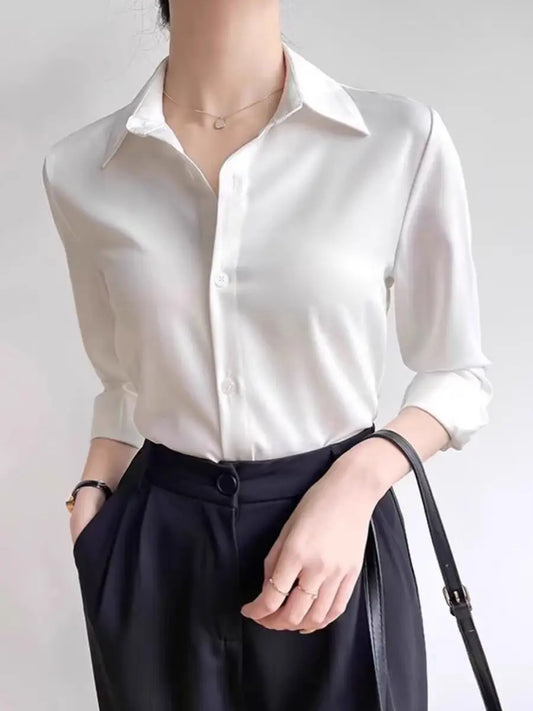 Chemisier mi-saison ample à manches 3/4 retroussées