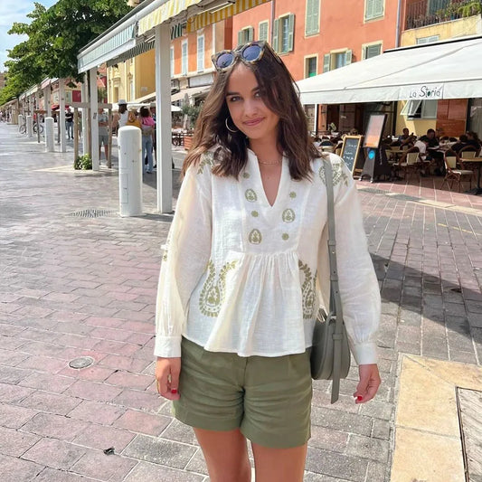 Intims - Chemisier Vintage à Manches Longues avec Broderies pour Femme - 75319FR