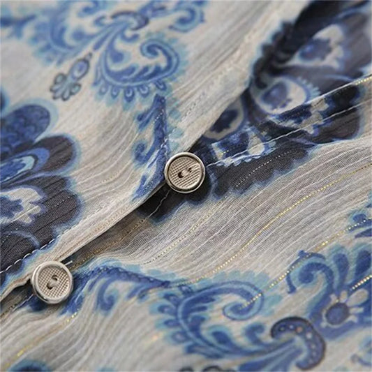 Intims - Chemise Imprimée Bleu et fil métallique pour Femme - 34567FR