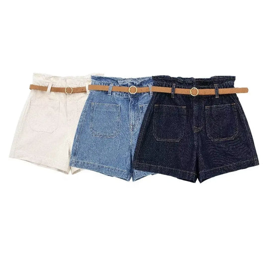 Intims - Short taille haute en coton et lin avec poches pour Femmes - 00105FR