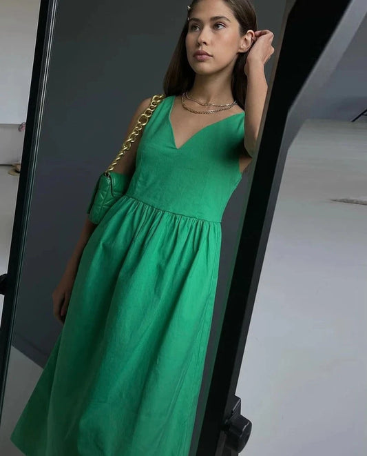 Intims - Robe Été Verte à Col en V pour Femmes - 67890FR