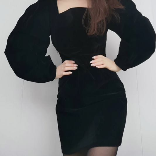 Intims - Robe noire en velours à col carré