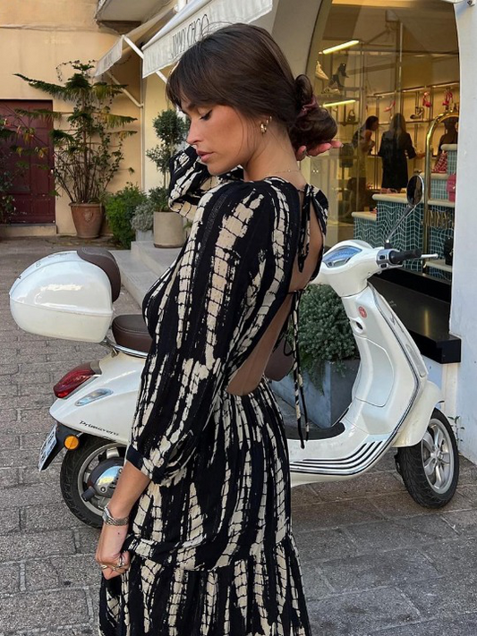 Robe longue Noir & Blanche à dos nu
