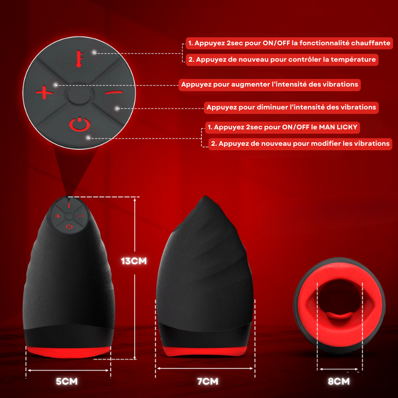 Explorez vos désirs seul ou accompagné ! Imaginez-vous allongé, vous abandonnant au plaisir suprême alors que vous ressentez d'intenses sensations qui parcourent tout votre corps... Vous serez transportée dans une dimension d’extase sans limites, éprouvant un incroyable sentiment de satisfaction que vous n’auriez jamais cru possible ! Que ce soit en solo pour des moments de plaisir personnel ou accompagné pour pimenter vos moments intimes, le MAN LICKY se prête parfaitement aux deux. Sa polyvalence offre des possibilités uniques pour vous et votre partenaire, permettant une exploration partagée des sensations.