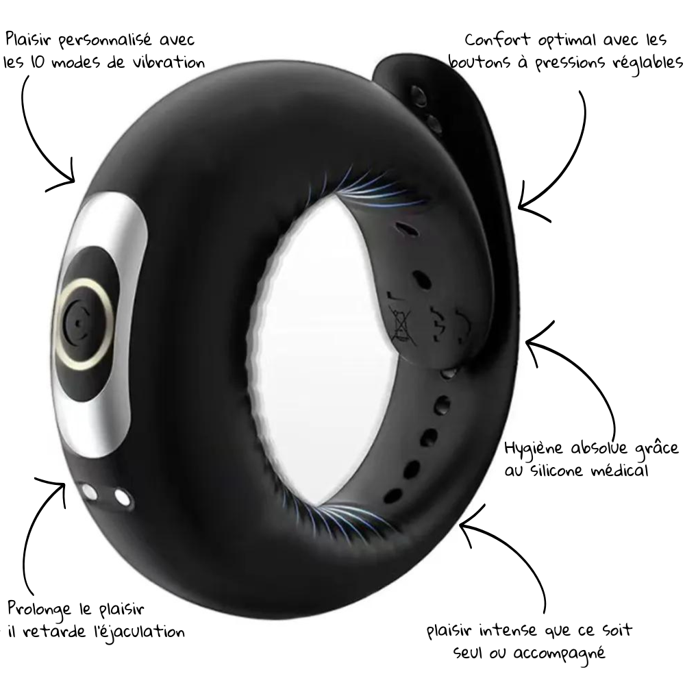 P-RING - Anneau Pénien 10 Vibrations en silicone ajustable - Retarde l'éjaculation