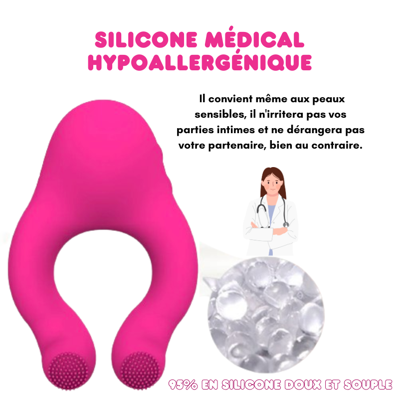 De plus l'anneau est composé à 95% en silicone médical hypoallergénique, doux et souple. Il convient même aux peaux sensibles, il n'irritera pas vos parties intimes et ne dérangera pas votre partenaire, bien au contraire ! Enfin, POULPY se nettoie facilement pour une hygiène optimale.