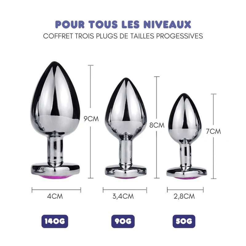 Explorez de nouvelles dimensions de plaisir et de sensualité avec notre trio de plugs anaux en métal, spécialement conçu pour satisfaire vos envies et sublimer vos moments intimes. Ce set de trois plugs de tailles progressives (S, M, L) est parfait pour une initiation en douceur ou pour enrichir les pratiques des utilisateurs expérimentés.
